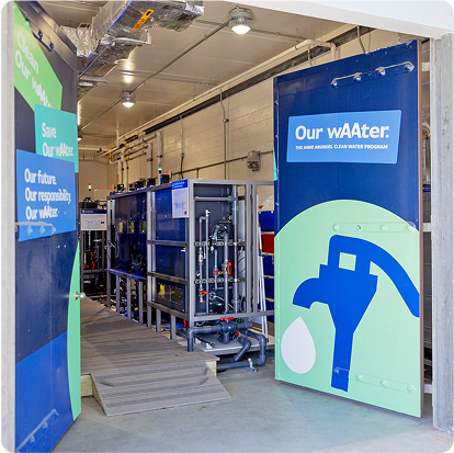 Request a Tour! Facility Map and GuidelinesThe Advanced Water Treatment System allows us to recycle our used water while providing Anne Arundel County with safe drinking water. Water returned to the aquifer will be passed through advanced levels of treatment to meet drinking water standards and will be vigorously tested and monitored for quality control. Water returned to the aquifer may be withdrawn again in the future and would be treated again before entering the water distribution system.